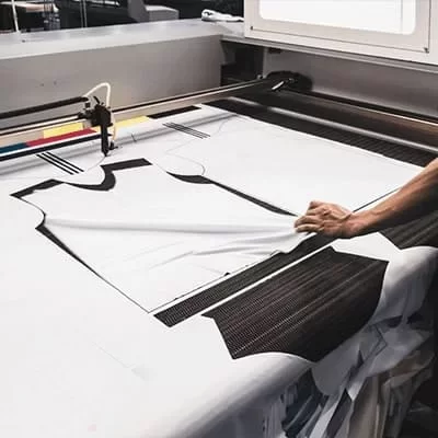 After sourcing, the fabric is cut down into pieces according to the patterns. After that, according to our client’s requirements, these pieces have printing or embroidery.